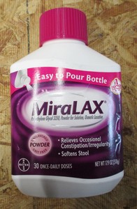 Miralax is also sometimes used for colonoscopy bowel preparation. A reduction of the miralax in his mix is noticed in his 'output difficulties'. We were actually told that it comes in liquid form, not powder that must be mixed with water. The dose is based on your child's age (not weight) one of our pediatric gastroenterology specialists may adjust the child's dose based on how the program is working. Lactulose, like miralax, is a.